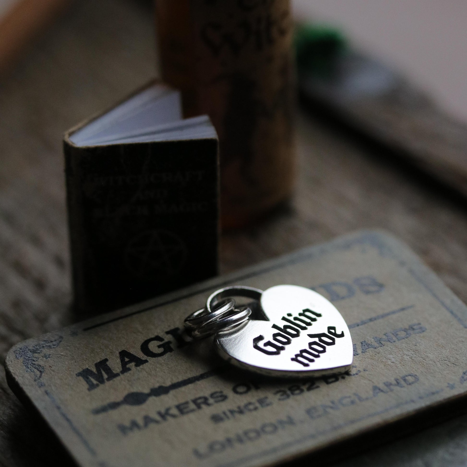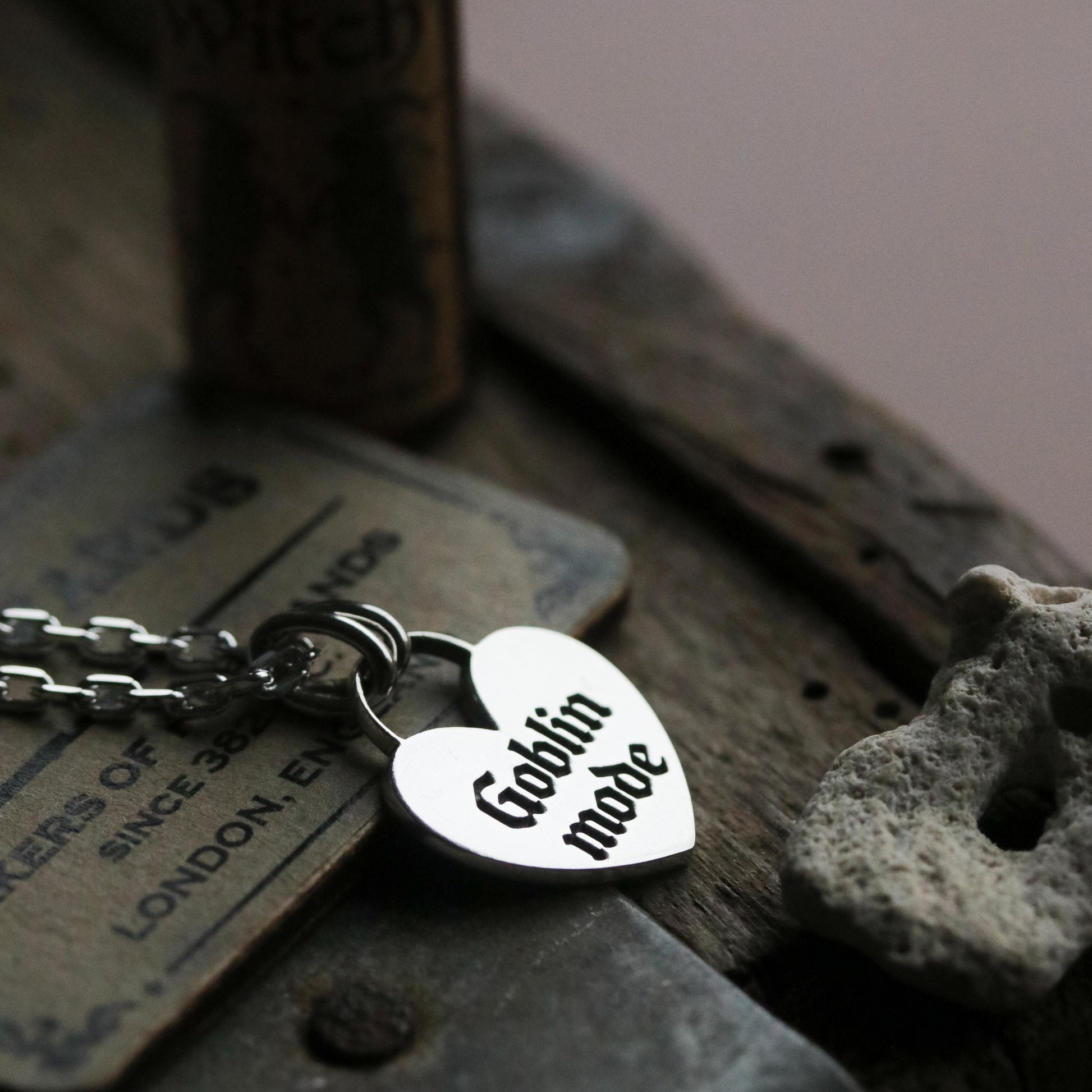 Sterling silver "Goblin mode" charm, a cute heart but a little bit goth because I just don't do cute hearts only x.