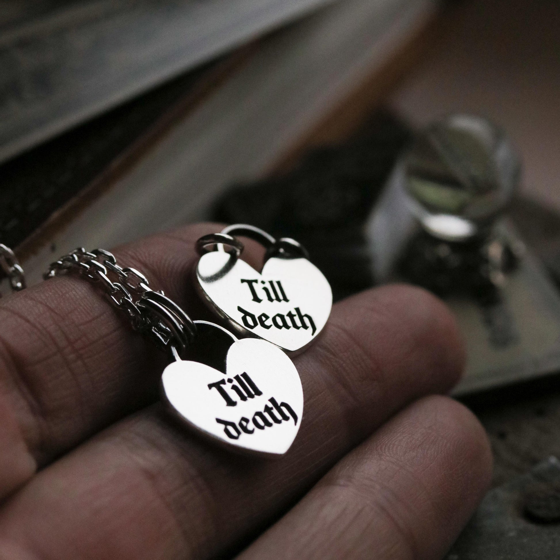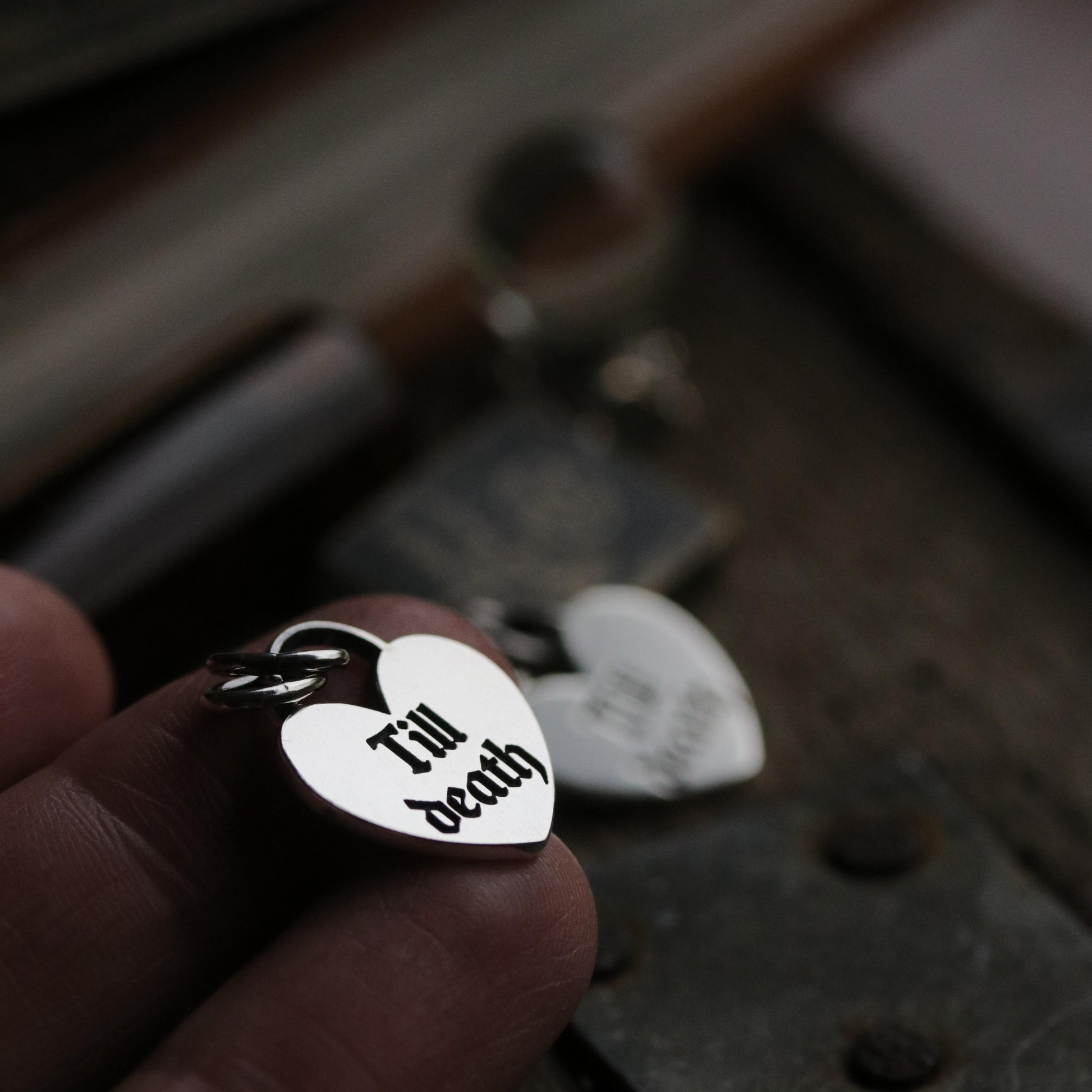 Sterling silver "Till death" charm, a cute heart but a little bit goth because I just don't do cute hearts only x.